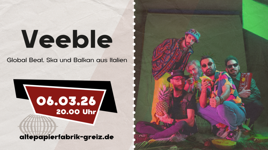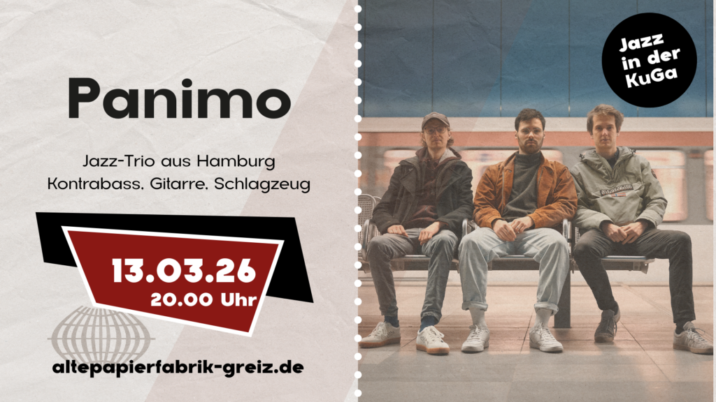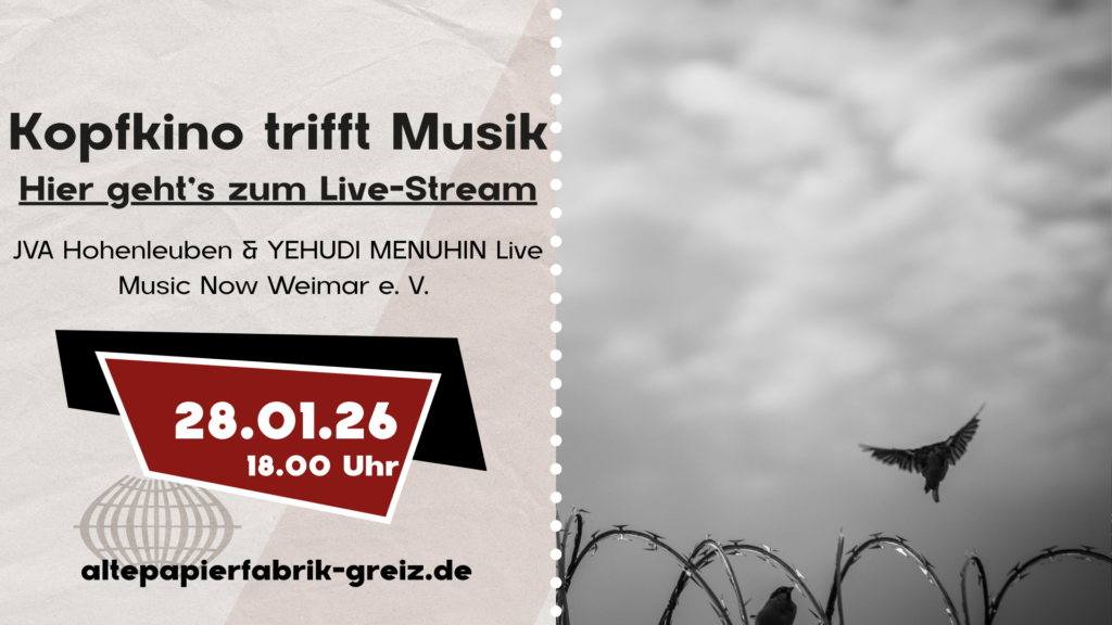 Mehr infos unter: https://livemusicnow-weimar.de/konzert/oeffentliches-konzert-kopfkino-in-der-alten-papierfabrik-in-greiz/